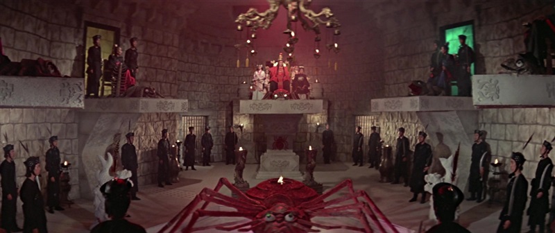 We get the usual opulent set designs and fanciful battles, though the action design from Tang Chia and Yuen Cheung-Yan is a bit pedestrian and many of the battles rely more on fireworks and flashbangs than actual humans (or spiders) trading blows. The fact they used an actual spider means that it is hilariously non-threatening in a combat situation... even if it does usually win.